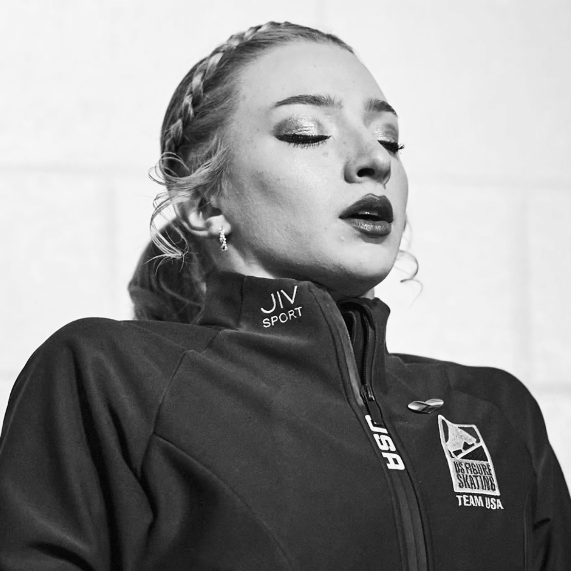 Sedan 2024 har JIV haft äran att designa och producera klubbkläder för det amerikanska konståkningsteamet, som använder sig av just den här jackan "expert jacket".
